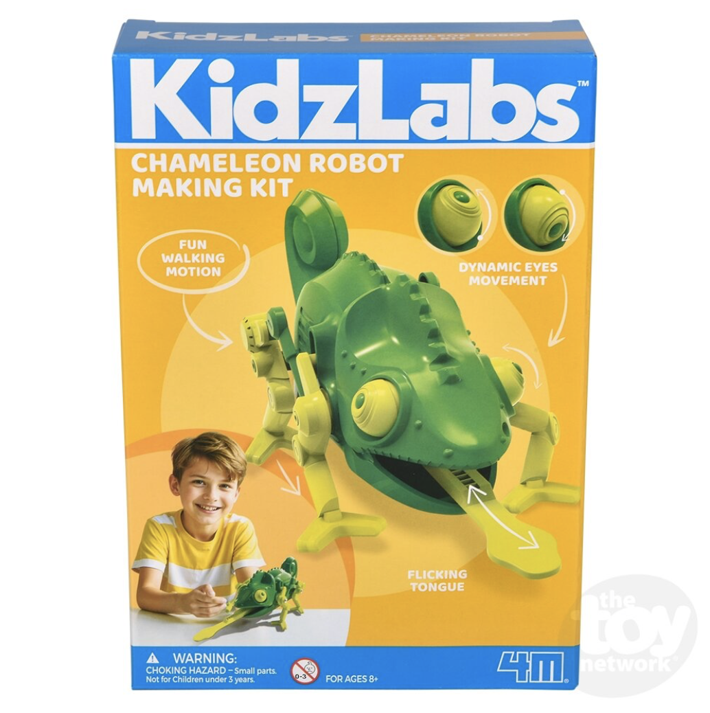 Build your very own Robotic Chameleon with this 4M kit! Includes all the parts needed to build a chameleon that walks, has spinning eyes, and a tongue that sticks out