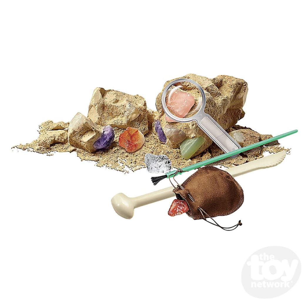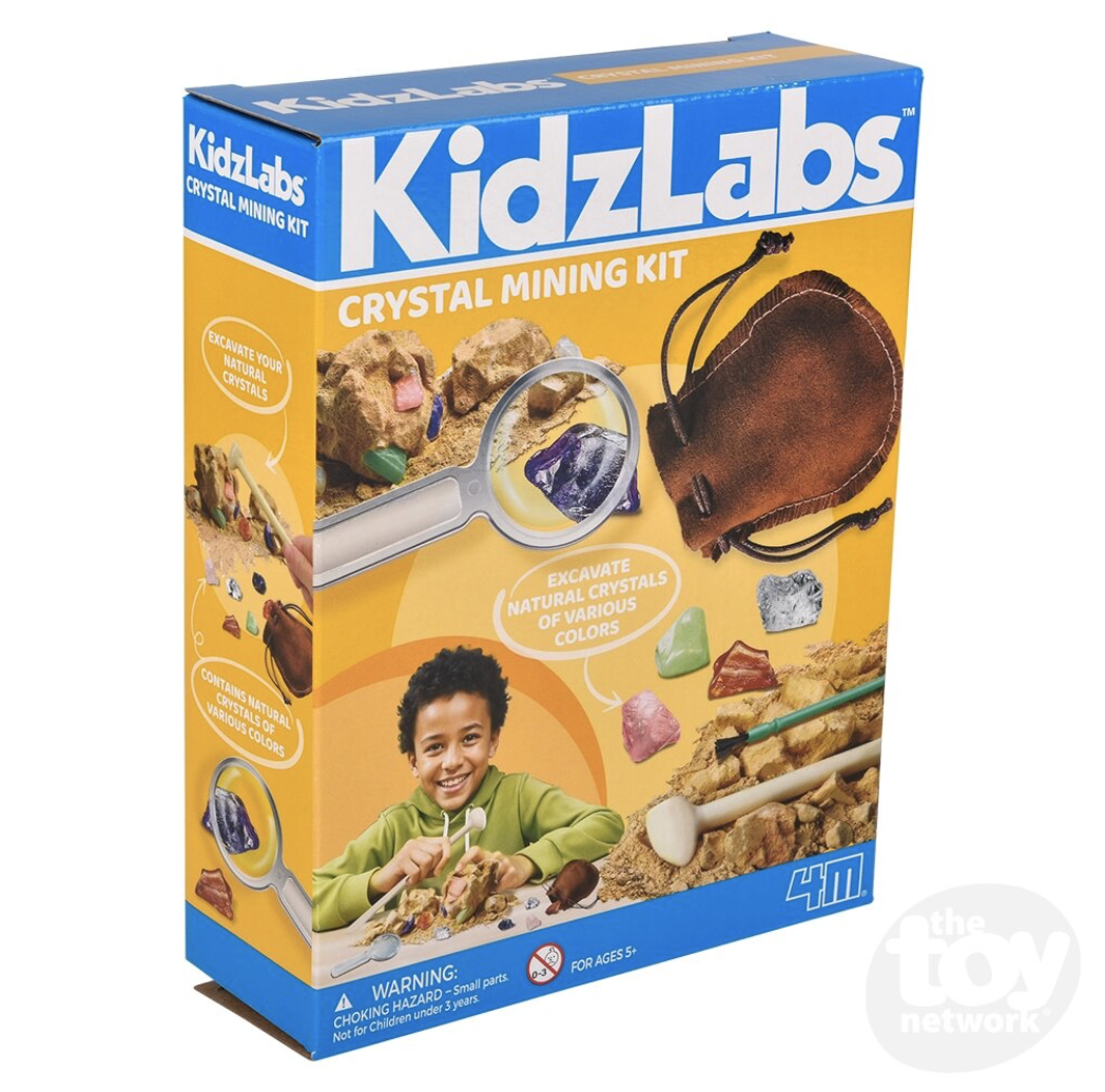 Dig for real crystals with this Kidzlabs – Crystal Mining kit. Different crystals are encased in the included sandstone. Includes instructions and tools for digging through the stone.
