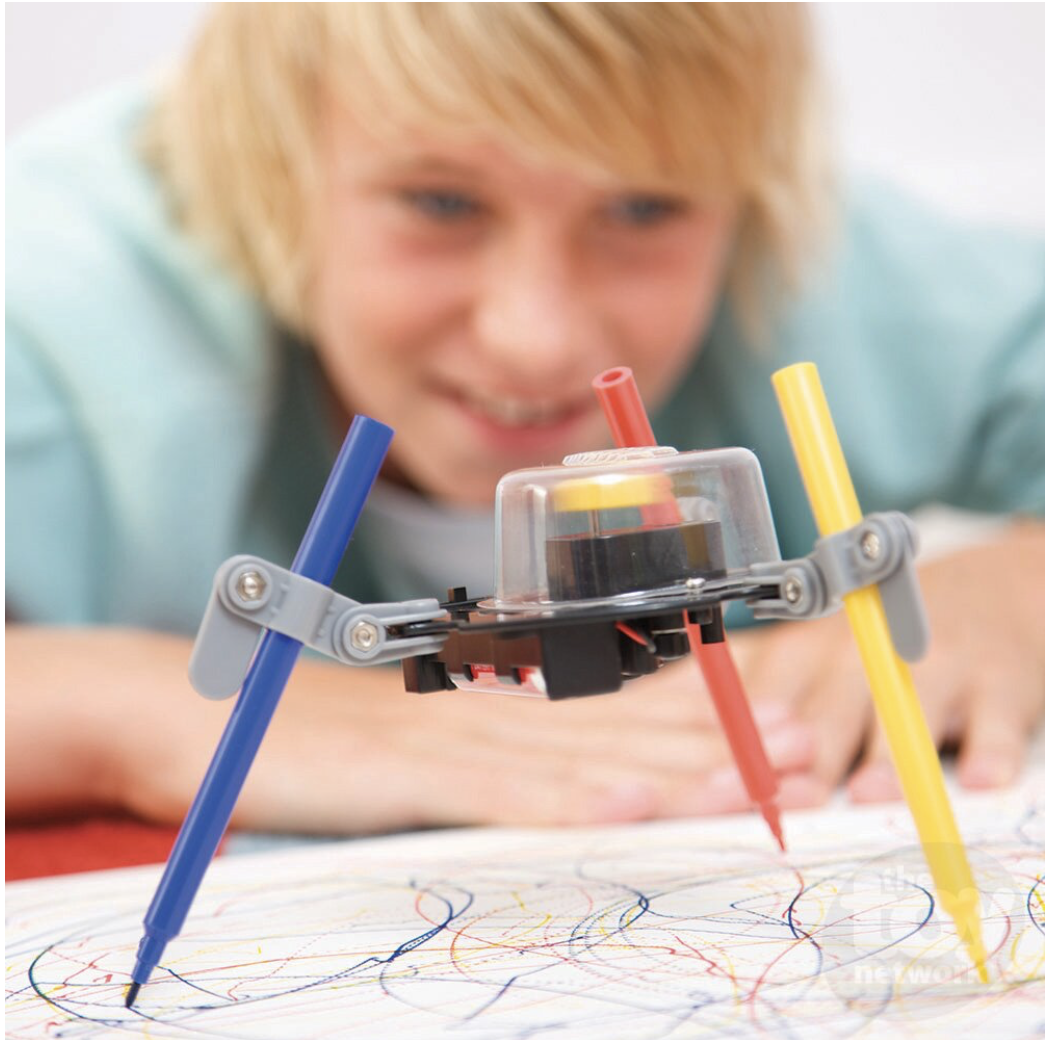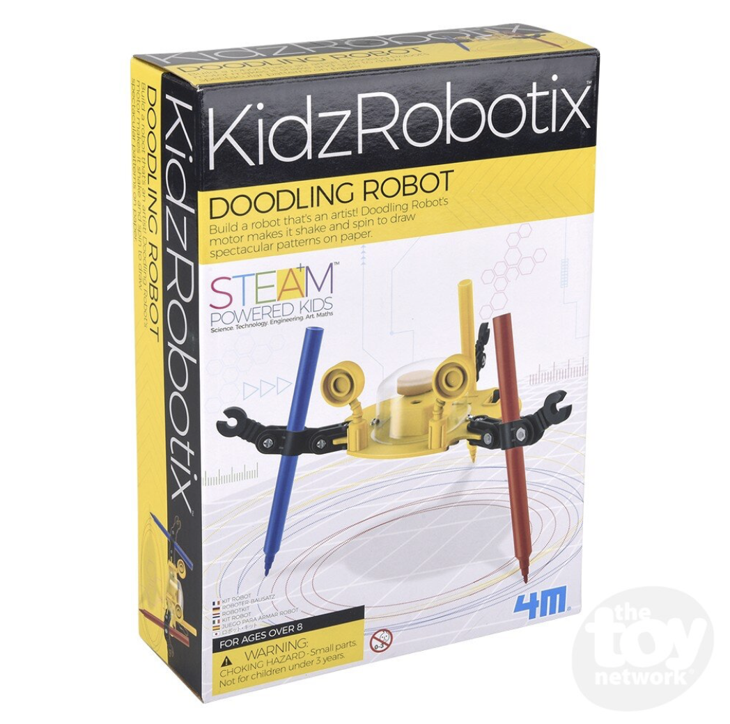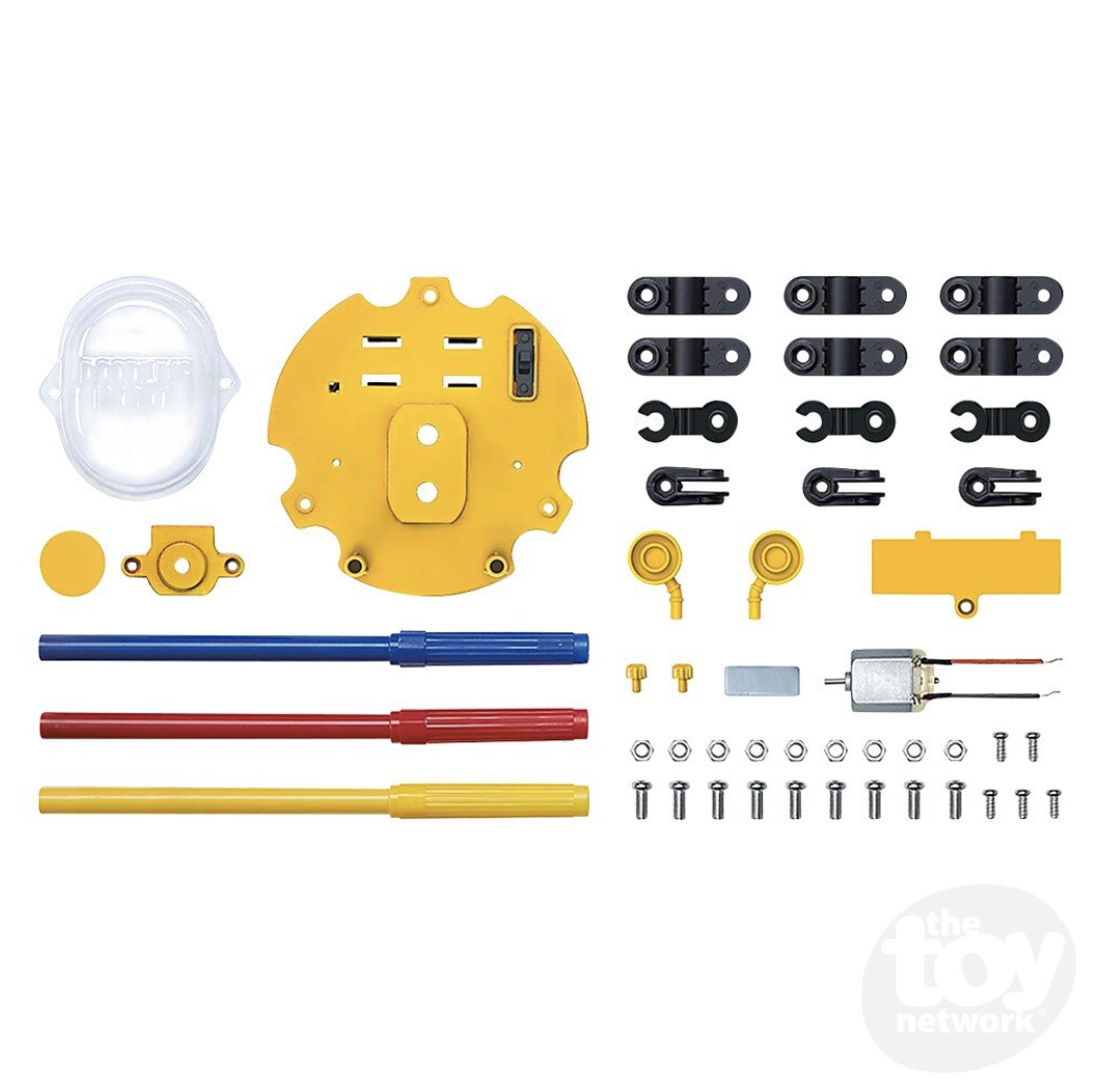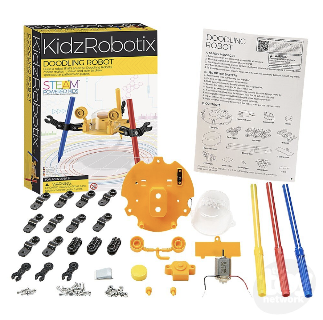 Build this KidzRobotix – Doodling Robot that draws on its own. The motor makes the robot spin and shake to create unique patterns. Great kit for beginner robotics. Requires 1 x AA battery.