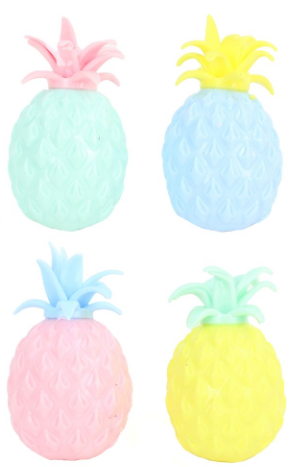 A collection of pastel coloured trendy pineapples which are very satisfying to squeeze! A fruity toy!