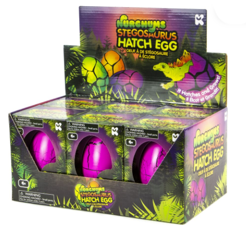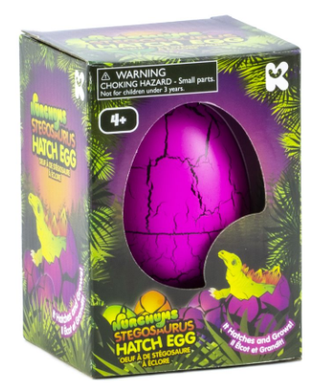 Dinosaurs hatched from eggs! Possess your own Stegosaurus egg, pop the egg into a bowl of water and watch as the baby dinosaur hatches out of the egg and grows!