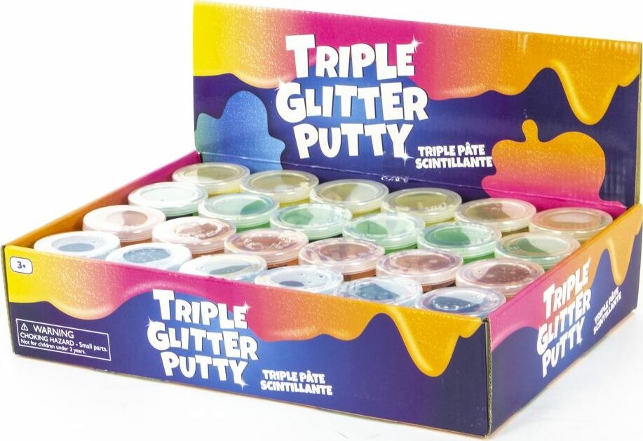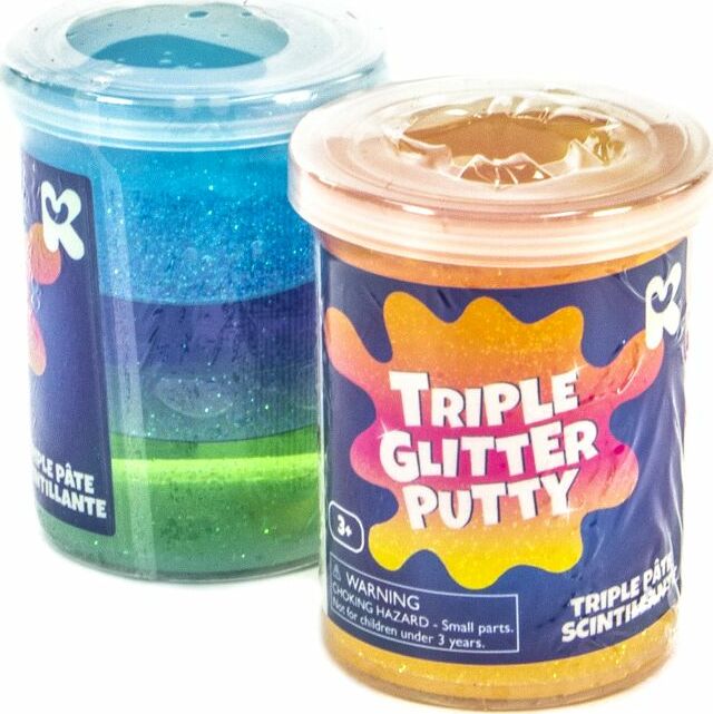 This pot of 3 colour glitter putty is lots of fun to play around with! Take the layers out one by one and squish and mould the putty in between your fingers! Smush all of the colours together to make one big lump of glittery fun!