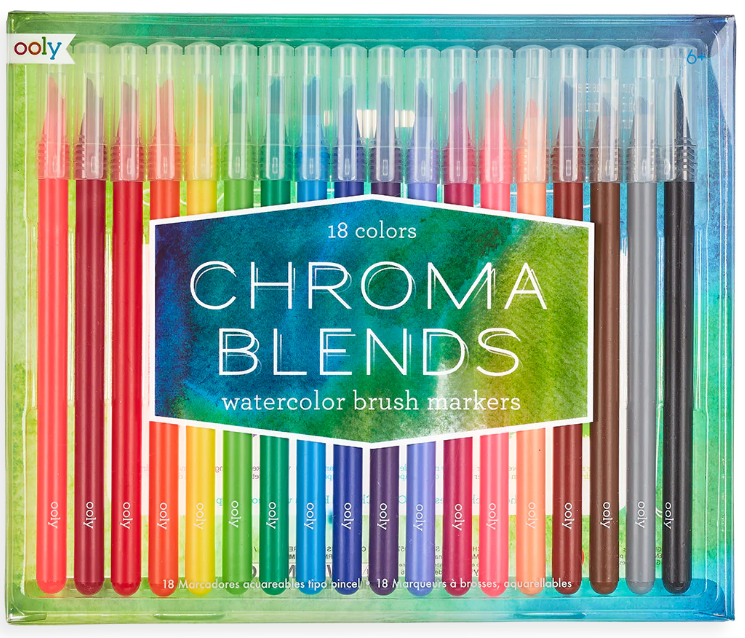 Watercoloring will never be the same with Chroma Blends™ Watercolor Markers. This beautiful 18 piece set features a colorful array of watercolor markers with brush tips. Just add water for amazing watercoloring.
