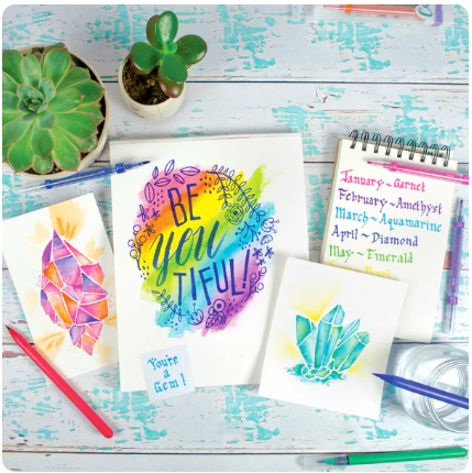 Watercolor makers work a lot like watercolor brushes. Try out different techniques like adding water directly to the watercolor marker for a traditional watercolor effect. You can also try adding water to your paper first and then start painting with the watercolor marker for an incredibly organic look. Chroma Blends Watercolor Markers work just like brush markers too when you don’t use any water at all. And when you look real close the Chroma Blends brush tips are actually made with synthetic bristles or a true watercolor brush feel.