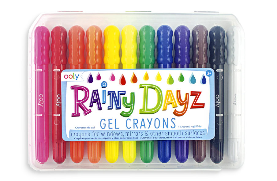 Make your windows, mirrors and glass surfaces works of art. Rainy Dayz Gel Crayons draws vibrant and bold colors on glass surfaces… and paper too. And for an extra special touch use a wet paintbrush to add amazing watercolor effects too. Comes in 12 bright colors and cleans off easily.