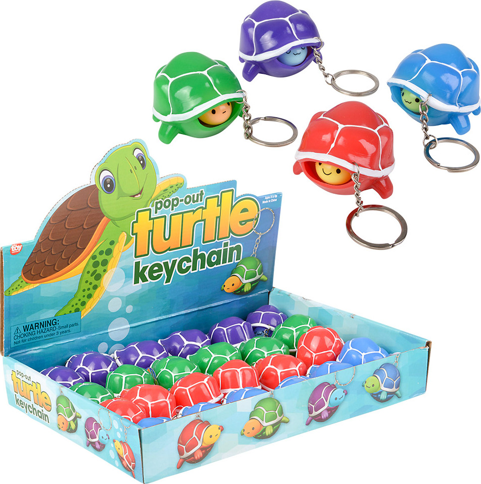Squeeze this 2″ Pop Out Turtle Keychain to watch the turtle head pop out. Easily clips to most keychains.