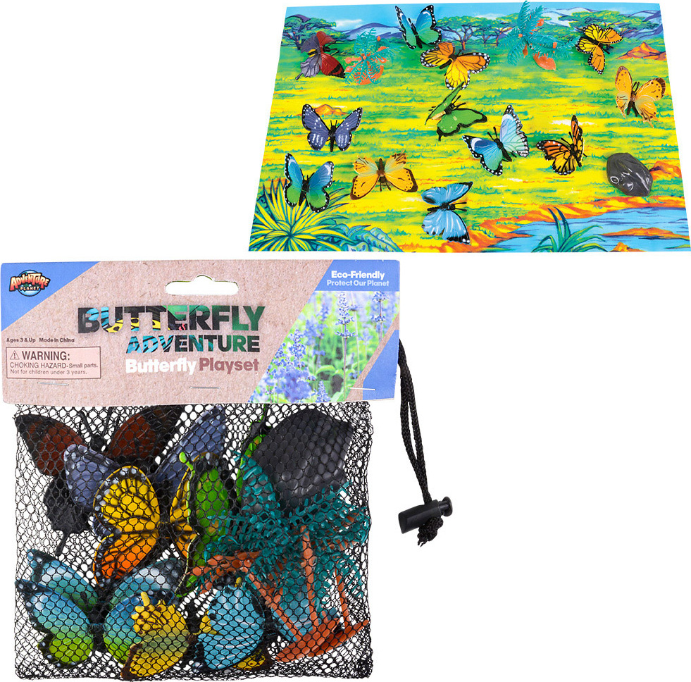 These mesh bag play sets are perfect impulse toys for kids, featuring durable plastic butterfly figures sold in reusable netted bags.