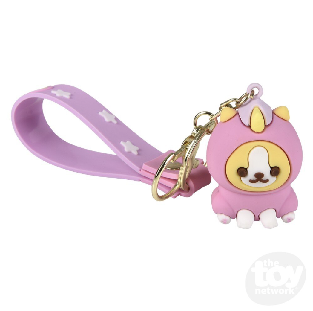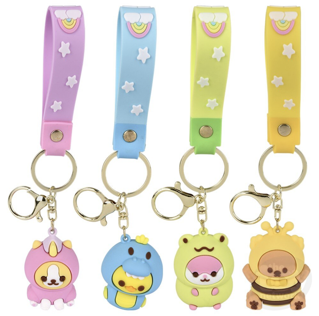 These Kawaii Animal Wristlets feature animals in unique costumes and can be used for accessorizing or clipping to keychains with their ring. Assorted styles.