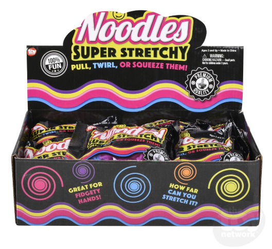 This fun fidget toy comes in a variety of fun colors. Stretchy noodles are perfect for on-the-go fun.