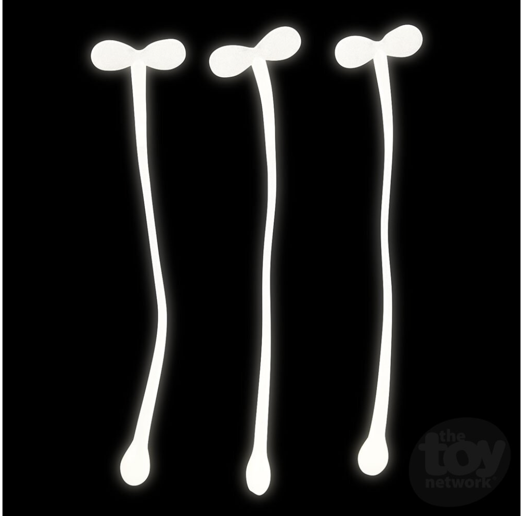 Yuck! Use these Glow in the Dark Snots to toally gross out your friends! Charge them up with a flashlight and they glow in the dark! 3 pieces on a blister card.