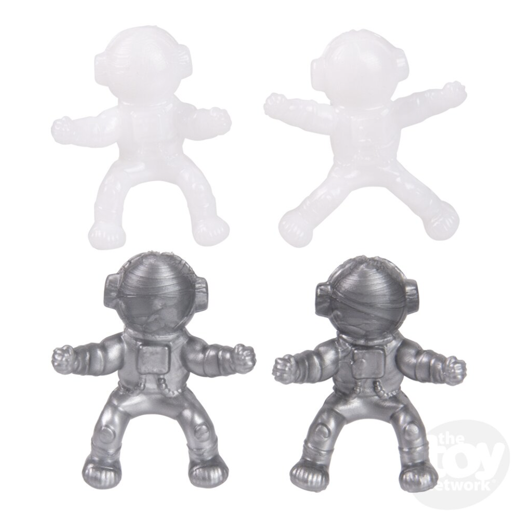 These tiny astronaut figurines stick and stretch and are great for fidgety fun! Assorted styles. Several astronauts are in each container.