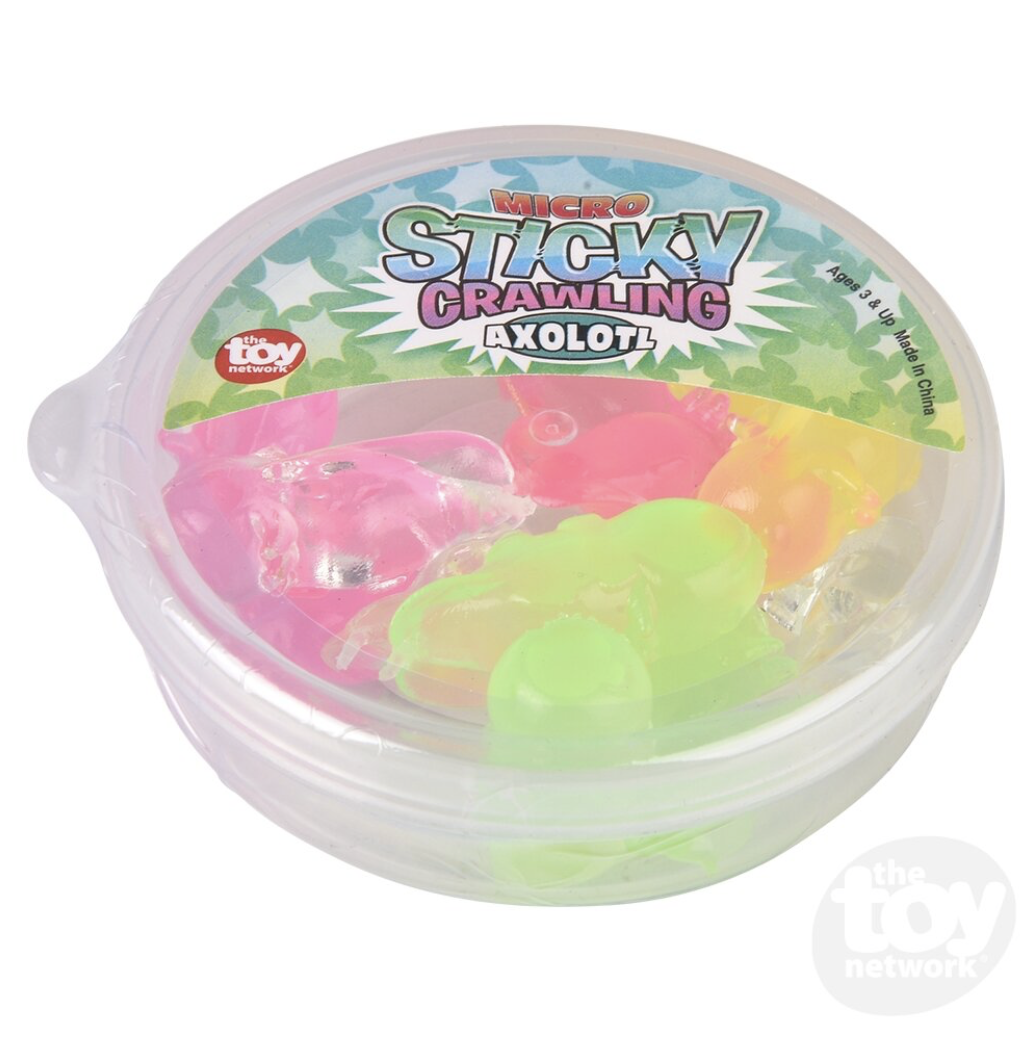 These tiny axolotl figurines stick and stretch and are great for fidgety fun! Assorted styles. Several axolotls in each container.